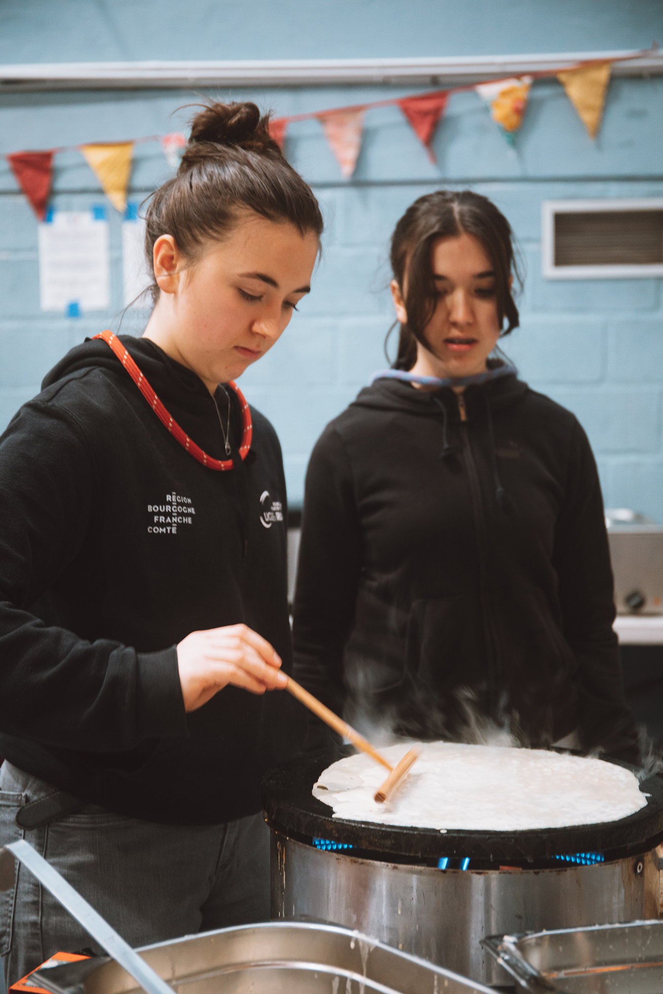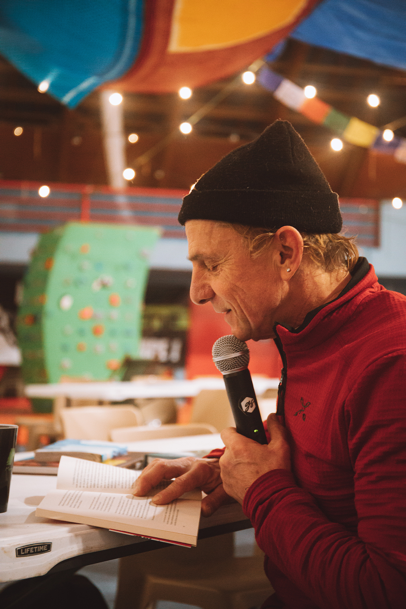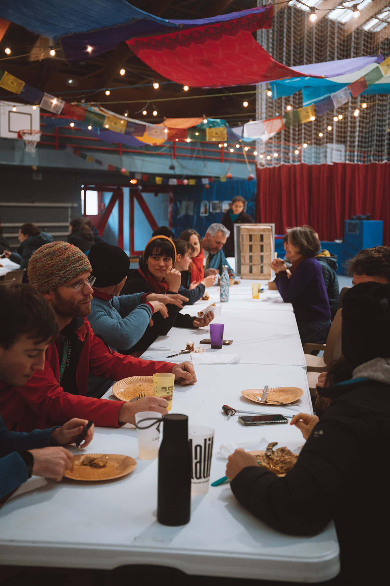Le "camp de base" s'installe au gymnase municipal, décoré et transformé pour l'occasion en lieu d'échange avec sa buvette, sa cantine, sa librairie éphémère et ses expositions photos.